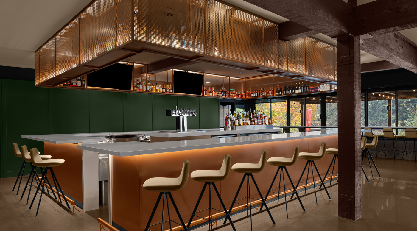As for handcrafted cocktails, there’s the Cascadia, made with vodka, rosé, Aperol, marionberry, peach, and lemon; Smoke on the Water, a mixture of Rittenhouse rye, Averna, Douglas fir brandy, Bénédictine, and alder smoke; and the Kentucky Cosmos, featuring Old Forester 100, Cointreau, pomegranate, vanilla, and lemon.