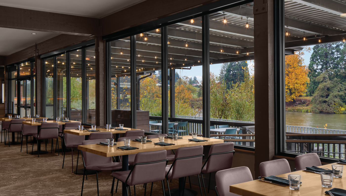 Sweet Waters on the River at Valley River Inn has long been one of the finest dining establishments in Eugene. Built more than five decades ago on the banks of the picturesque Willamette River, this iconic restaurant exudes intimacy and romance with its astounding views, sophisticated ambience, and classic Pacific Northwest fare. It’s a piece of local Americana at its very best.